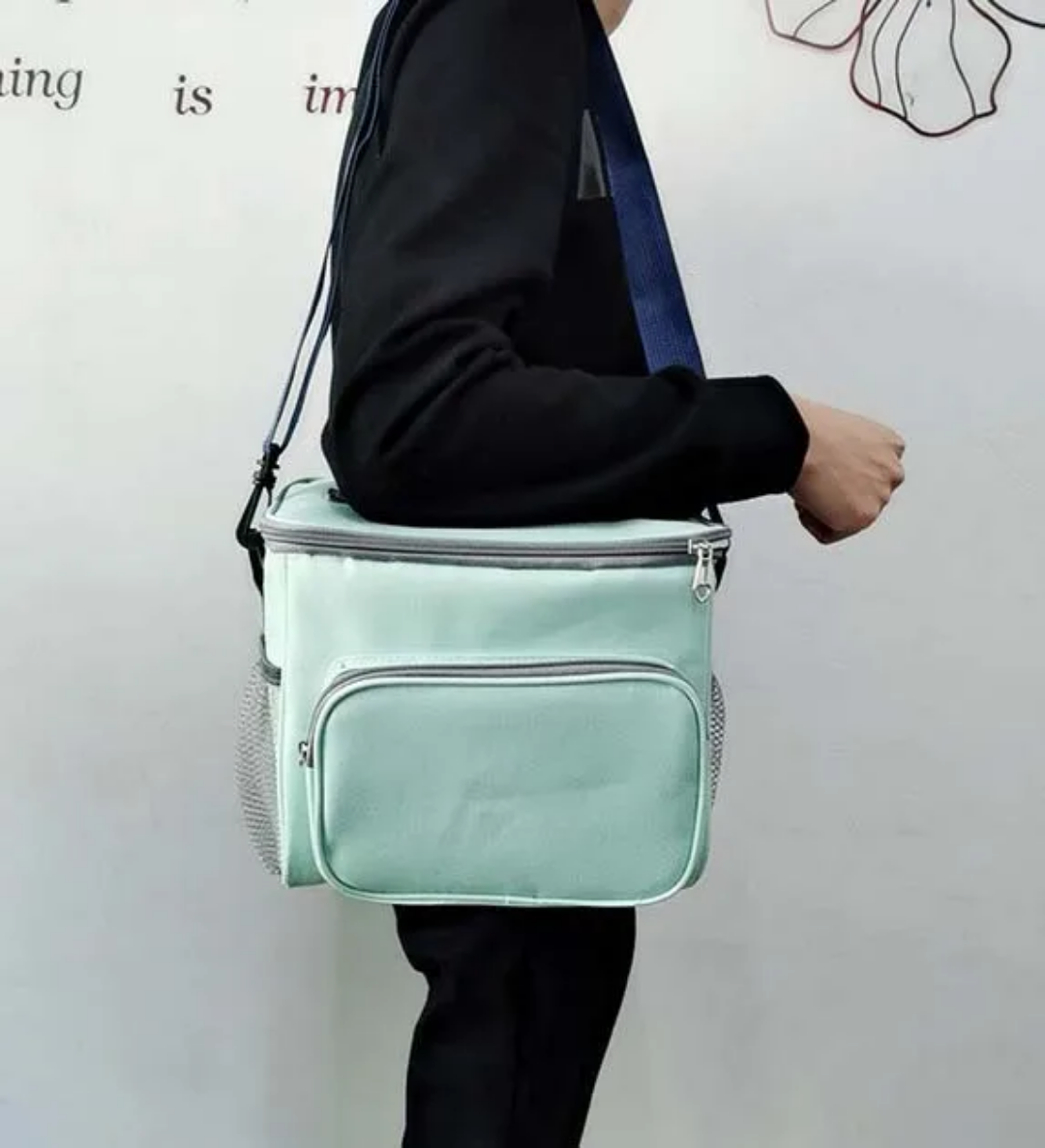Lunch bag has a reinforced handle on top and adjustable shoulder strap that can be adjusted between 12 and 26 inches. You can carry the insulated lunch bag box in your hand or on one shoulder.