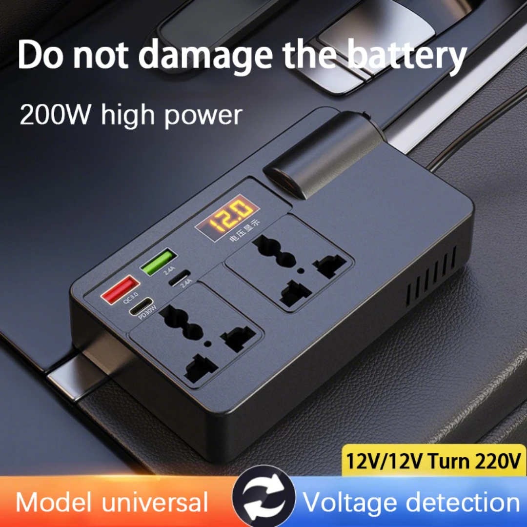 Portable Car Power Inverter DC 12V to AC 110V-220V / 200W Converter with 2 Ac USB ports plus 4 USB ports