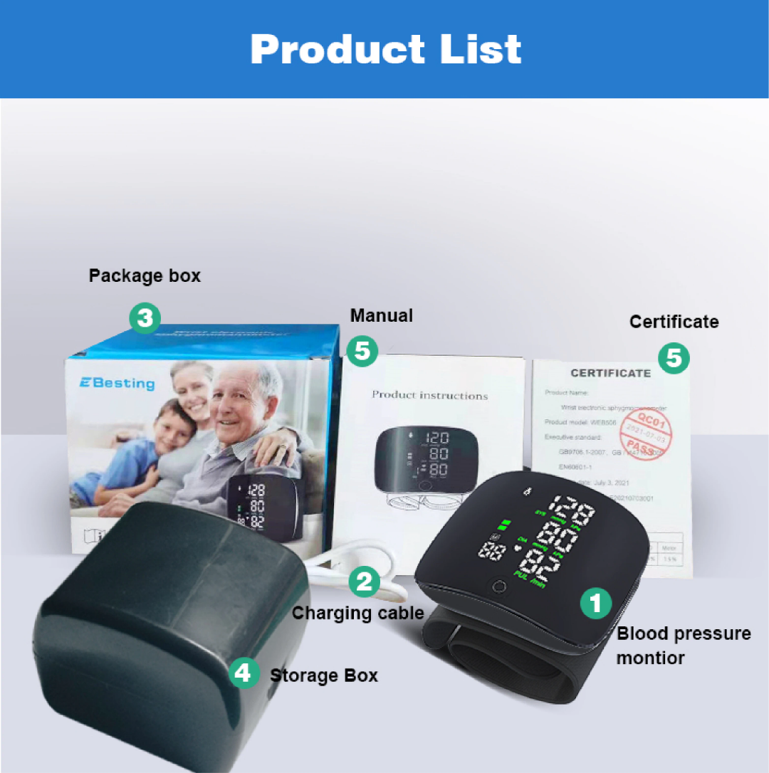 Wrist electronic Rechargeable sphygmomanometer blood pressure monitoring kit